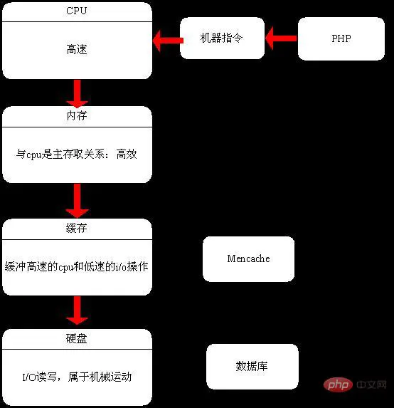 对数据库的操作属于I/O操作,属于机械运动,也就是说一个网站的瓶颈再去对硬盘的读写造成的,解决办法就是减少i/o操作次数,使用缓冲技术,就是在数据的操作放在mencache里面,达到一定数量级的时候在一次性写入数据库,mencache属于key--value关系