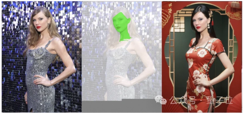 比如让霉霉穿上中国旗袍,结果发饰、服装、背景等各种细节全都替换掉了。