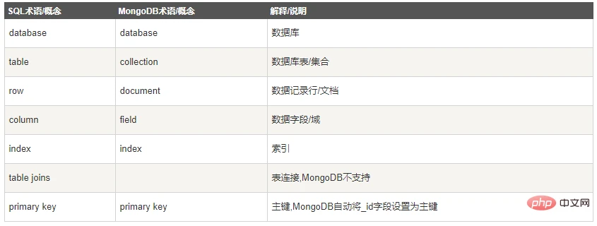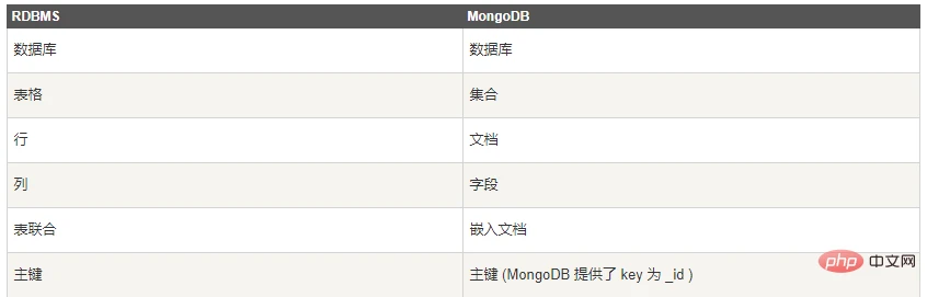 4、介绍一下RDBMS与Mongodb的一些概念,有助于帮助大家理解
