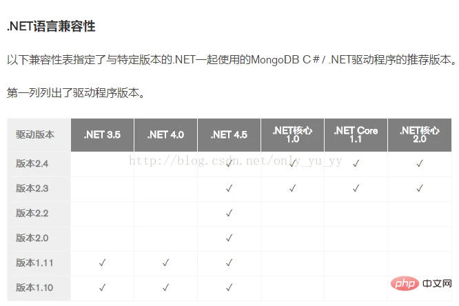 首先,我们在MongoDB的官方文档中看到,MongoDb的2.4以上的For .Net的驱动是支持.Net Core 2.0的。