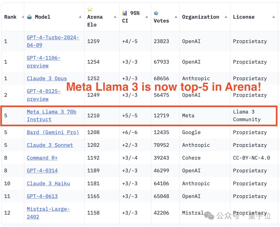 Llama 3的400B版本还没出来,单靠70B参数就获得了第五名……