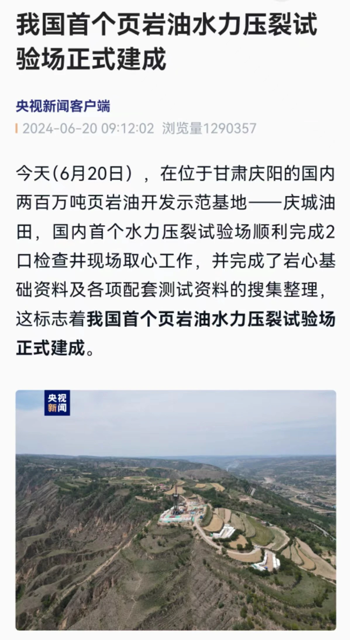 中石油为提高水平井单井产量和经济效益,已于 2021 年在长庆油田部署国内首个水力压裂试验场建设项目。长庆油田页岩油开发攻关团队历经三年半建设,现场钻井、压裂、取心,配套测试 10 项 15 次,单井最长取心段 361.8 米,突破长庆页岩油水平井单井最长取心记录。