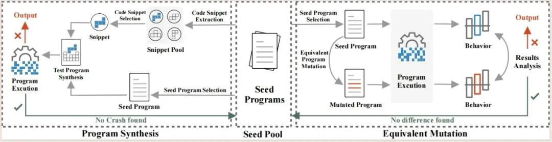 基于程序综合的测试程序生成技术:该项技术将程序代码拆解成细粒度代码片段,彼此之间涉及不同的语言特征,进而在语法语义约束的指导下,实现测试程序的高效合成。值得注意的是,该项技术能够以历史缺陷作为基础数据,提取与缺陷相关的代码片段,并将其融合至多样的代码上下文中,以激发其触发更多缺陷、执行更多代码分支的能力。基于程序变异的测试预言构造技术:该项技术通过对仓颉编程语言语法语义进行深入分析与挖掘,设计一系列等价变异算子与不等价变异算子。前者在测试预言上提供补充,融合蜕变测试思想,提升技术揭错能力,而后者则进一步增强测试程序多样性,引入更多仓颉语言特性、底层库调用等信息,实现对仓颉编译器的更充分测试。基于代码表示的测试过程加速技术:该项技术旨在提升编译器测试效率,以在更短的时间内检测到更多的编译器缺陷。该项技术将测试程序代码进行片段化,并引入代码表示学习策略将其在语言定义空间中进行表征。进而,该项技术从多样性角度进行代码片段的利用、测试程序的生成,并将测试结果作为反馈,进一步指导后续测试过程,从而提升测试整体效率。