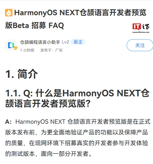 本站 6 月 21 日消息,华为自研仓颉编程语言今日正式亮相,并开启 harmonyos next 仓颉语言开发者预览版 beta 招募。
