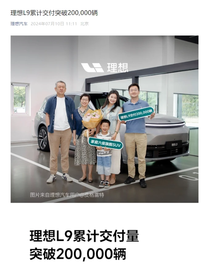 7月10日消息,理想汽车官方今日宣布,在北京顺义交付中心,一辆第20万辆理想l9已成功交付给一组三代同堂的家庭。这款车型自2022年6月21日正式上市以来,于同年8月30日正式开启交付,迅速赢得了市场的青睐。理想l9定位为6座增程式大型suv,目前在售的版本包括pro版和ultra版,其指导价分别为40.98万元和43.98万元。