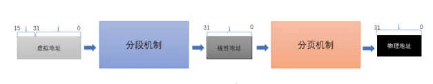 内存管理从虚拟地址映射到物理地址的过程也就是解决上面3个问题的过程。内存管理用分段机制和分页机制分别解决了上面的3个问题,大概过程如下图: