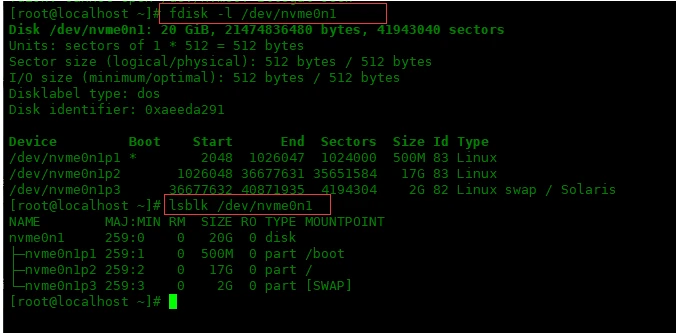 [root@localhost ~]# lsblk /dev/nvme0n1 [root@localhost ~]# fdisk -l /dev/nvme0n1