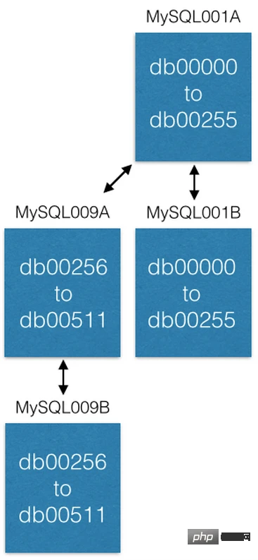{“range”: (0,511), “master”: “MySQL001A”, “slave”: “MySQL001B”},