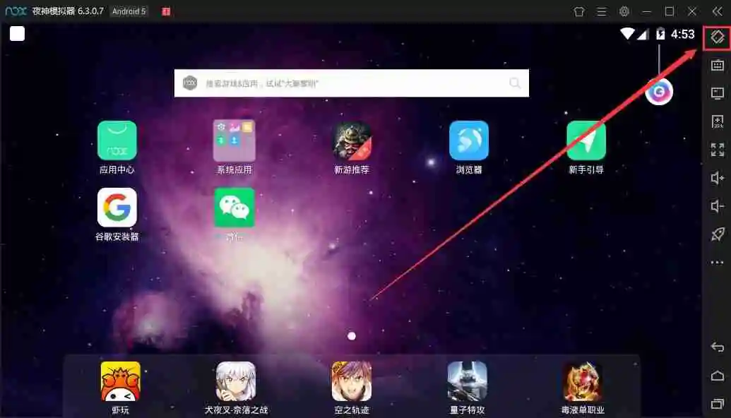 夜神安卓模拟器 ,电脑玩手游的新一代神器,采用类手机界面视觉设计的pc端桌面软件,用户在使用夜神模拟器的时候可能需要用到摇一摇功能,但是很多人不知道在模拟器中怎么使用此功能。因此今天小编就为大家介绍下夜神模拟器中摇一摇功能的使用方法。设置方法1、【摇一摇】功能在模拟器界面中点击右侧任务栏上的【摇一摇】图标就可以了。