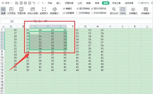 2.接着,在上方的视图菜单中,找到冻结窗格按钮