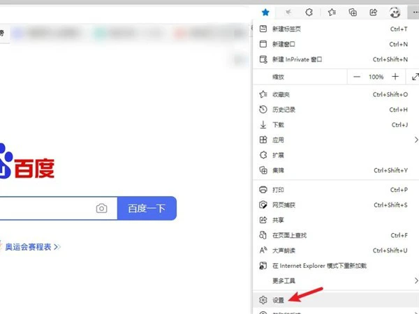 1、首先打开edge浏览器,点击右上角三个点,选择【设置】。