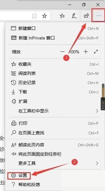 第一步:打开microsoft edge,鼠标点击【…】按钮,再点击【设置】选项按钮(如图所示)。