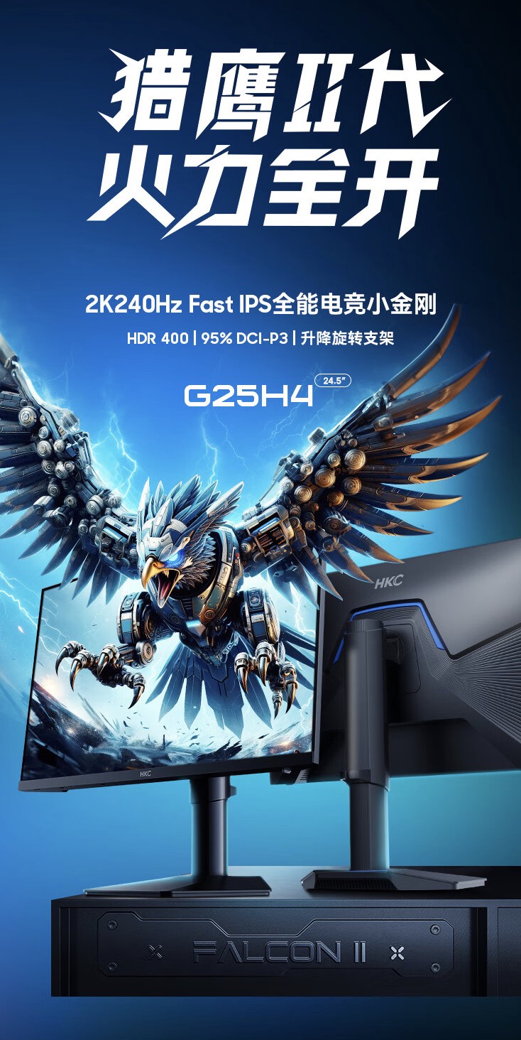 本站6 月 9 日消息,hkc 旗下“g25h4”24.5 英寸显示器目前已经在京东现货开售,这款显示器主打“2k 240hz fast-ips”,售 1699 元。