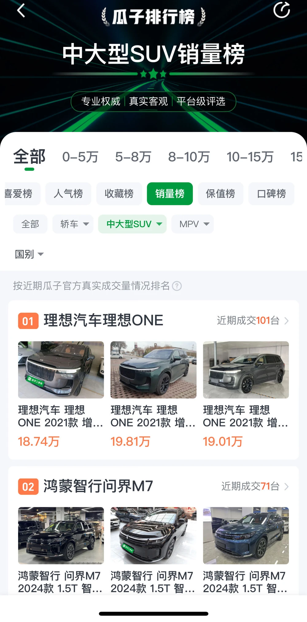 在9月开学季的影响下,家庭用车需求逐渐凸显,新车的火热销售,也进一步传导至二手车市场,以定位家庭豪华用车的理想为例,瓜子二手车大数据显示,近期在中大型SUV畅销榜中,理想ONE排名第一。