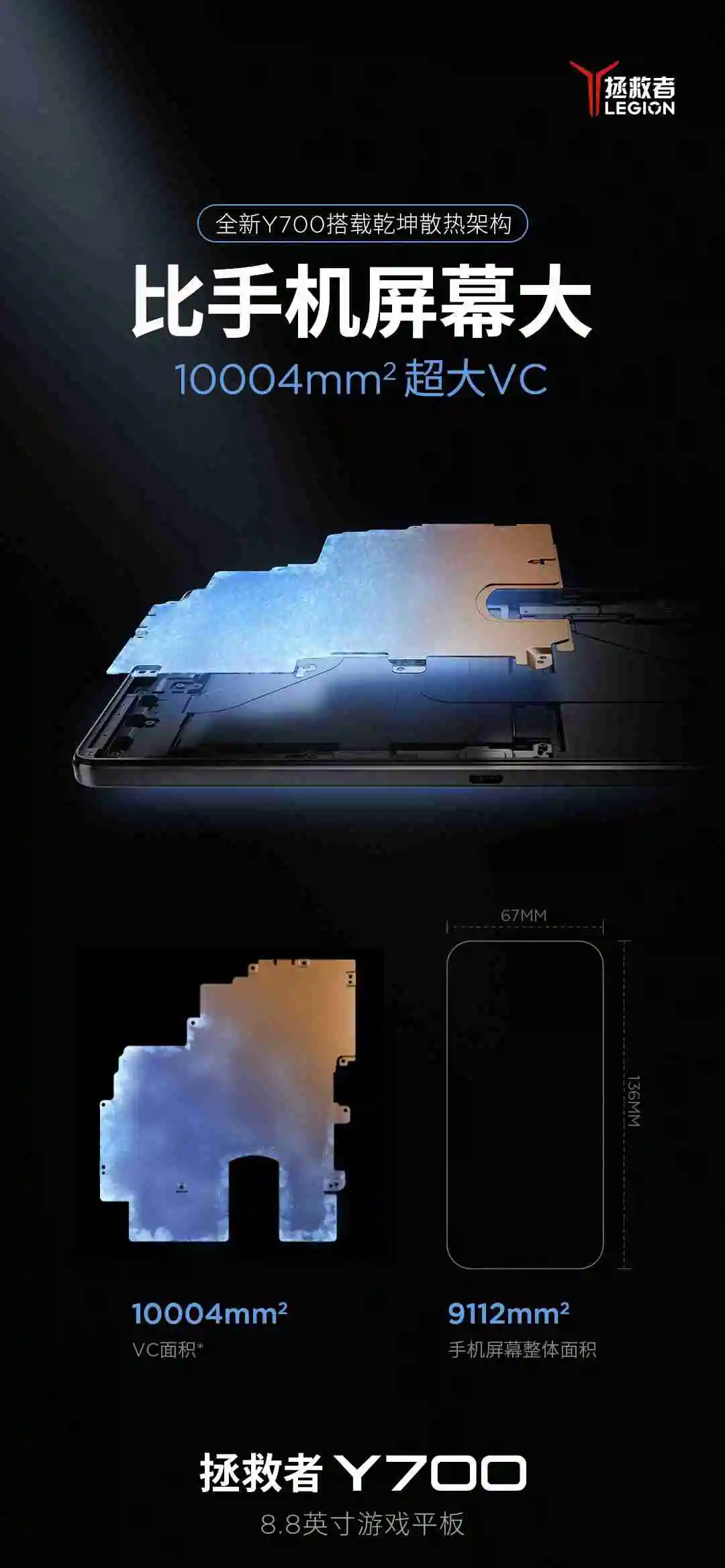 本站 9 月 23 日消息,联想拯救者官方今日对新一代y700 平板电脑进行预热,称其搭载乾坤散热架构,vc 面积 10004mm²,号称“比手机屏幕大”。