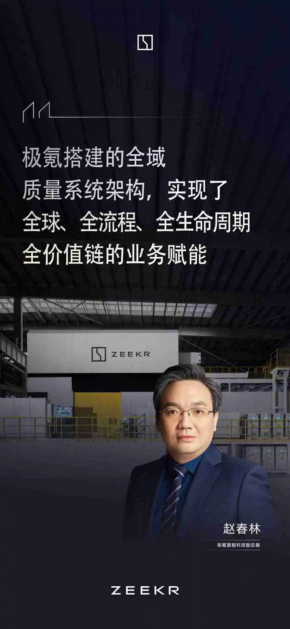 在演讲中,赵春林表示:“极氪始终坚持质量为本,用户体验为本,用户导向为中心,以‘为用户创造更多价值’为主线,以‘科技创新、卓越质量,为用户创造美好出行生活’为目标,通过智能质量管理,推动产品质量全面进阶,实现用户出行体验持续进化,累计已获得超32万用户的选择,成为用户认可的久经考验的‘公路坦氪’。”