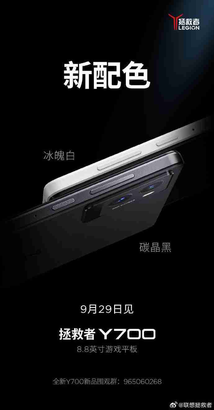 本站 9 月 28 日消息,联想拯救者今日宣布新一代 y700 游戏平板将推出冰魄白、碳晶黑配色,9 月 29 日发布。