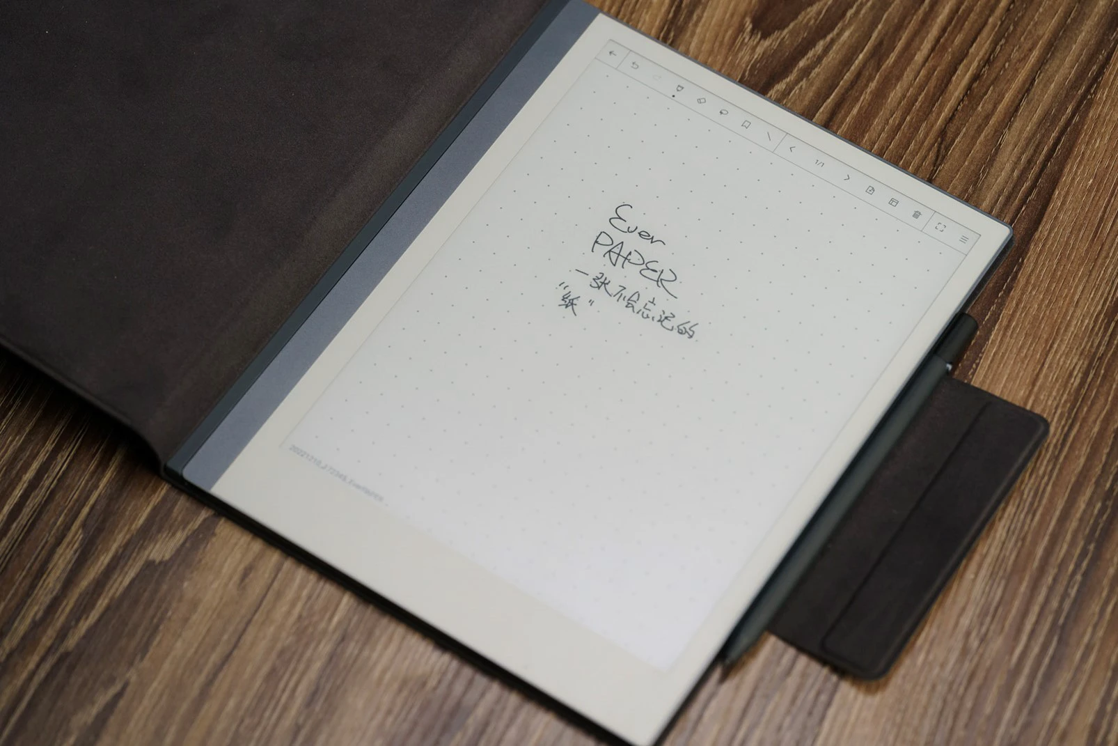 首先,EverPAPER配备的手写笔是Wacom电磁笔,4096级压力感应可以在文件中还原手写的真实笔触。受墨水屏刷新率的限制,EverPAPER的笔记没办法像iPad Pro那样以高刷新率实现字迹跟手。但只要你不是用EverPAPER来玩音游,针对正常的书写场景来说,EverPAPER已经足够跟手了。