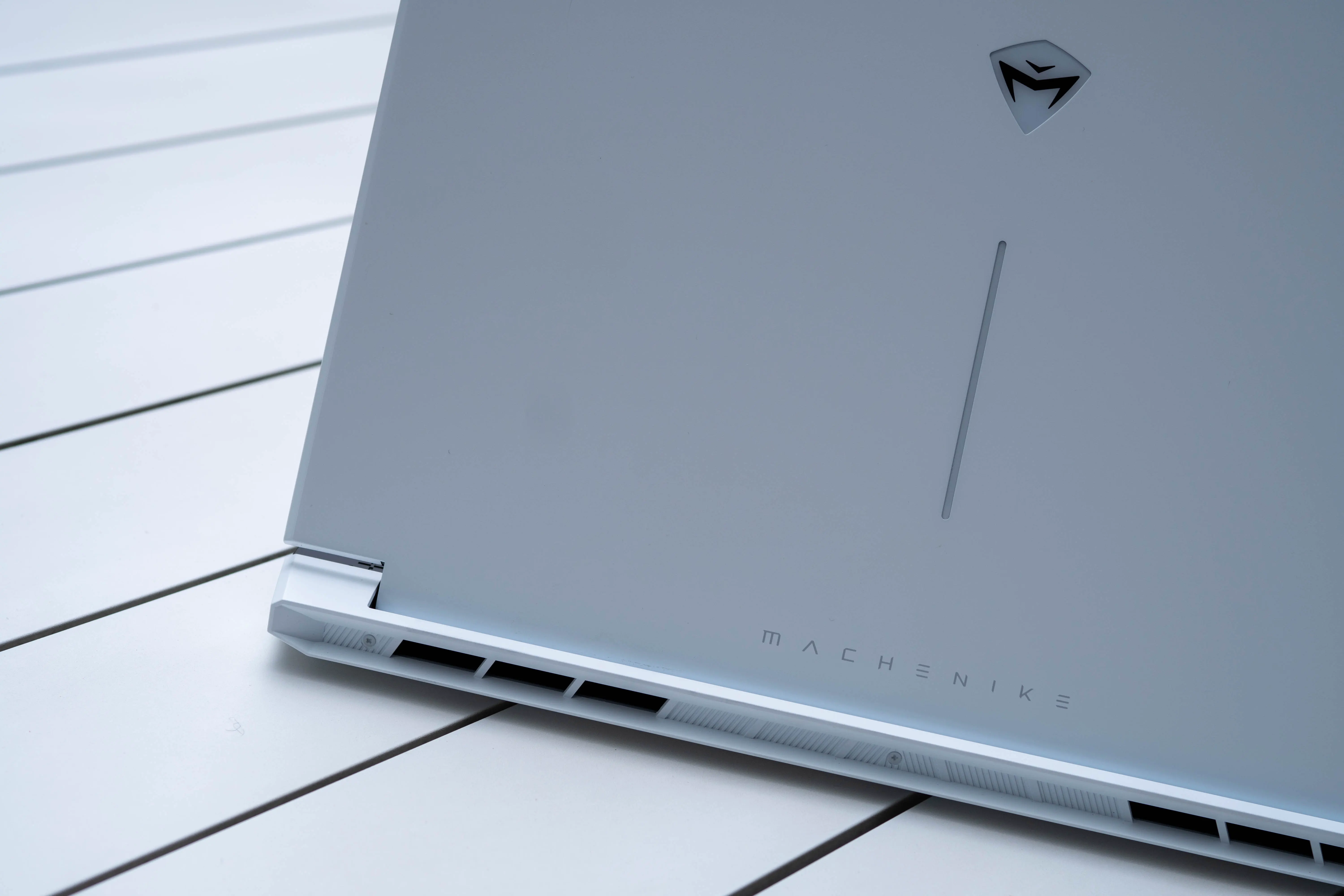 机械师曙光16 Air,自然也保留了这样的设计风格,和Alienware X16仿若孪生兄弟的屁股设计,同样的RGB发光logo和后出风口,可以说是延续了机械师一直以来的电竞基因。
