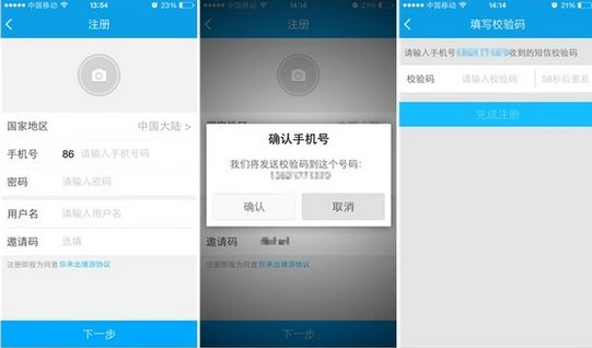 按照注册提示填写手机号、密码、用户名后点击“下一步”;