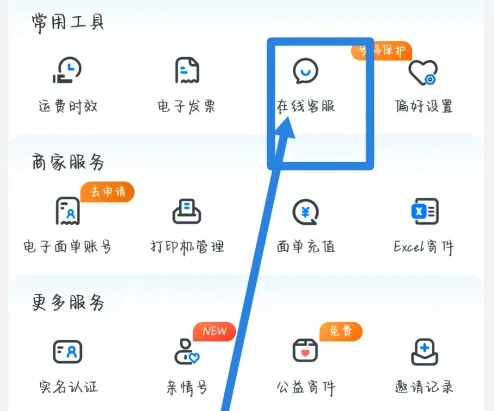 打开中通快递页面,点击在线客服。