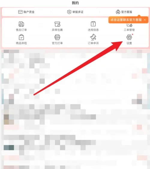 打开拼多多商家版APP,首先在我的页面点击设置按钮。