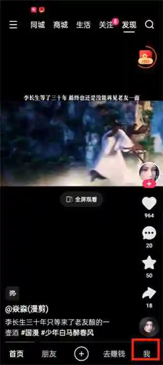 1、首选打开快手极速版软件,进入到首页中后我们可以切换到不同的页面中,在这里我们点击右下角的【我】;
