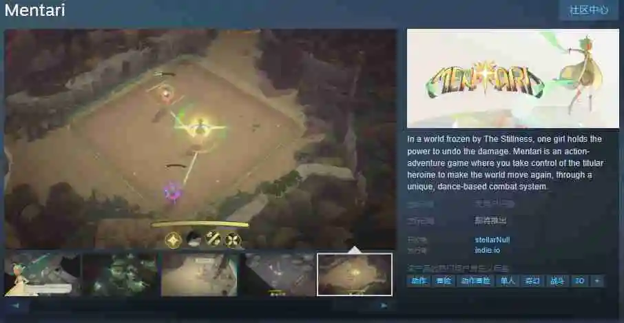 今日(10月10日),动作冒险游戏《Mentari》Steam页面公布,游戏暂不支持简体中文,发售日待定,感兴趣的玩家可以点击此处进入商店页面。