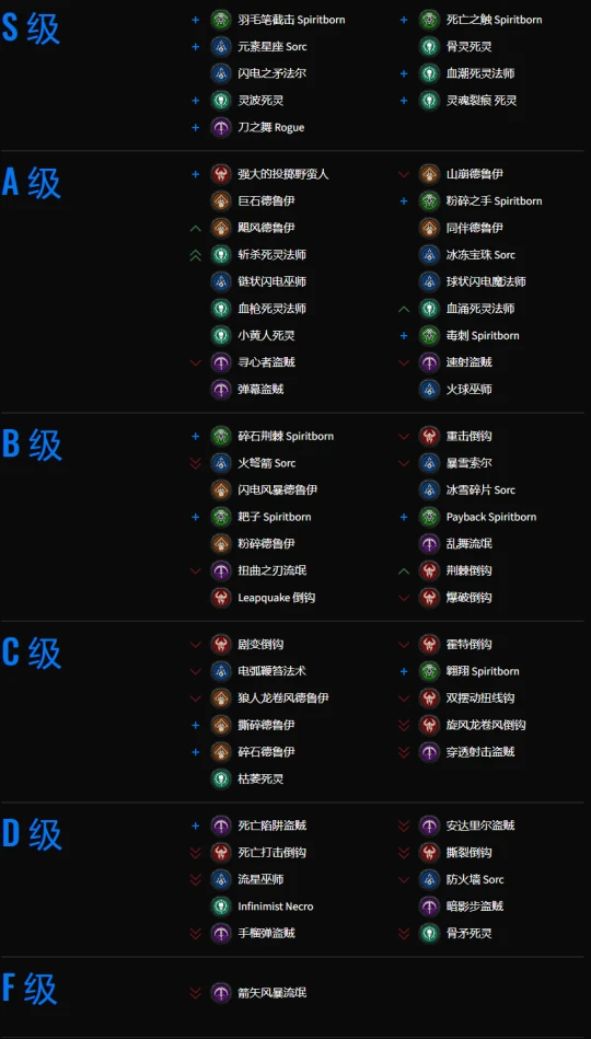 这是国外网站maxroll预测的s6赛季终局玩法各职业流派排行榜。