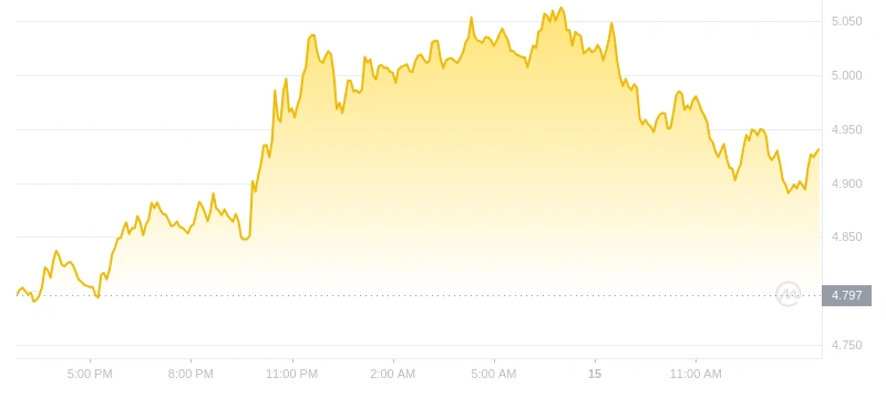 NEAR Protocol (NEAR) 目前以 4.9283 美元交易,过去 24 小时的交易量为 328465965 美元。