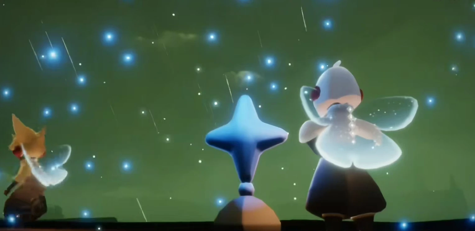先去到墓土地图,从大厅前方的云团暴风处直接下去,之后起身回头看向远处有洞的天空,找到那边有凹陷的山峰。接着朝凹陷处飞过去,接近后会有很强的风吹过来。此时可降落到山上,沿着沟壑走到里面去。遇到较强的空气阻碍时,就沿着山脉右侧走,一段时间后能看到空中划过的白色流星。此时可找一处风力较小的区域,否则风太大会让你的视角一直晃动。之后放下星星灯道具,坐下观看天空就行。也可和朋友直接背背飞天过来打卡。