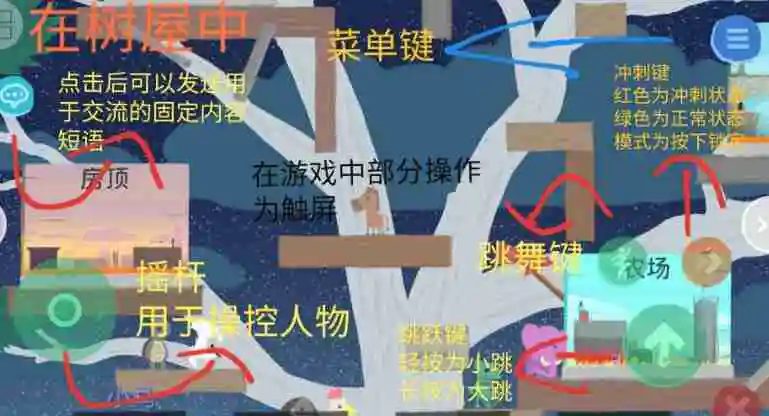 (2)跳跃:轻按小跳,长按大跳(手游版特性:长按住会一直跳)。