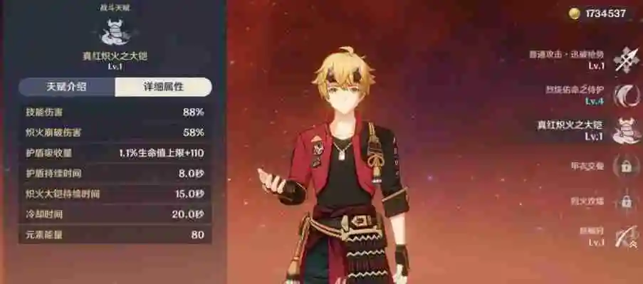 在打怪物时会生成一个火元素护盾,不管踢没踢到怪物护盾都会产生,E技能踢的这一脚护盾为火盾,因此对火元素有百分之二百五的吸收效果。托马的盾与钟离的盾是完全不同的,托马是先有的盾后出现的伤害,释放的瞬间会给自己挂一瞬间的火,也跟行秋有点像,不过作用不是很大,他自身的定位本来就是后台角色。