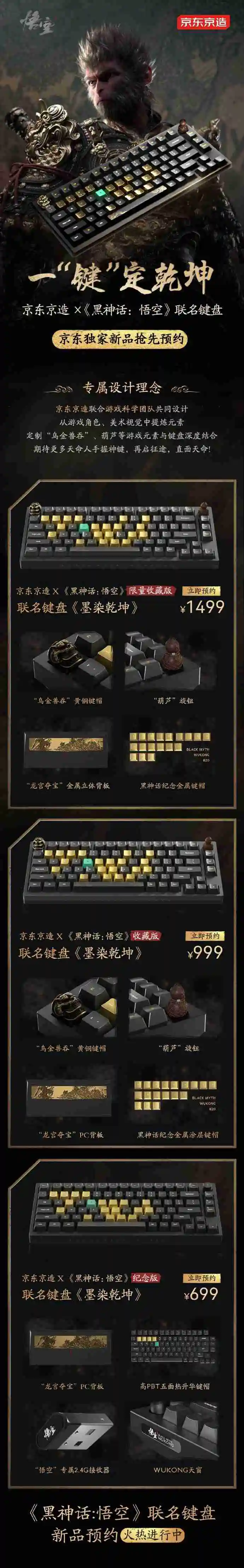 本站 10 月 16 日消息,本站从京东京造官微获悉,京东京造《》联名款《墨染乾坤》今日发布预约,其为京东京造团队与游戏科学团队共同设计,拥有高精度铝合金机身,将乌金皂罗袍、葫芦等深厚意象一一铭刻,到手价 699 元起。