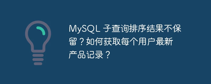 在 mysql 5.7.13 中,一个用户有一个产品,只显示最新的记录,但子查询排序后,排序结果不保留。尝试了分组后再排序,但仍然无法满足需求。寻求更靠谱、更简单的写法。