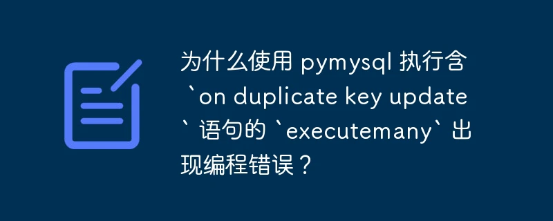 在示例中,on duplicate key update ... 语句的存在不会导致pymysql中出现的编程错误。问题出在以下代码行: