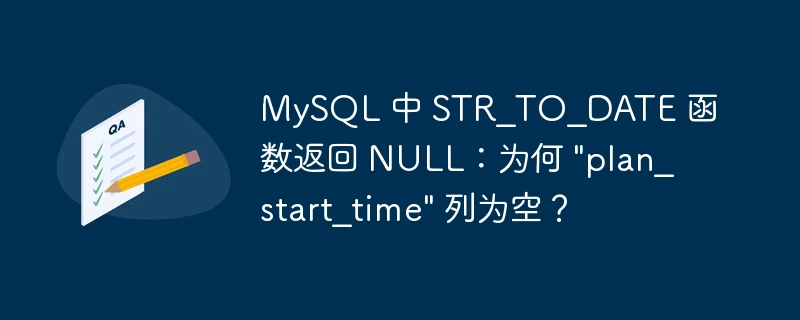 从给出的错误信息来看,问题可能在于str_to_date函数与"plan_start_time"列中存储的数据类型不匹配。