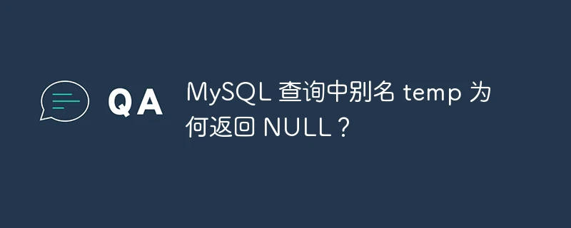 问题:在 mysql 查询中,使用以下语句查询别名为 temp 的列时,却返回了 null: