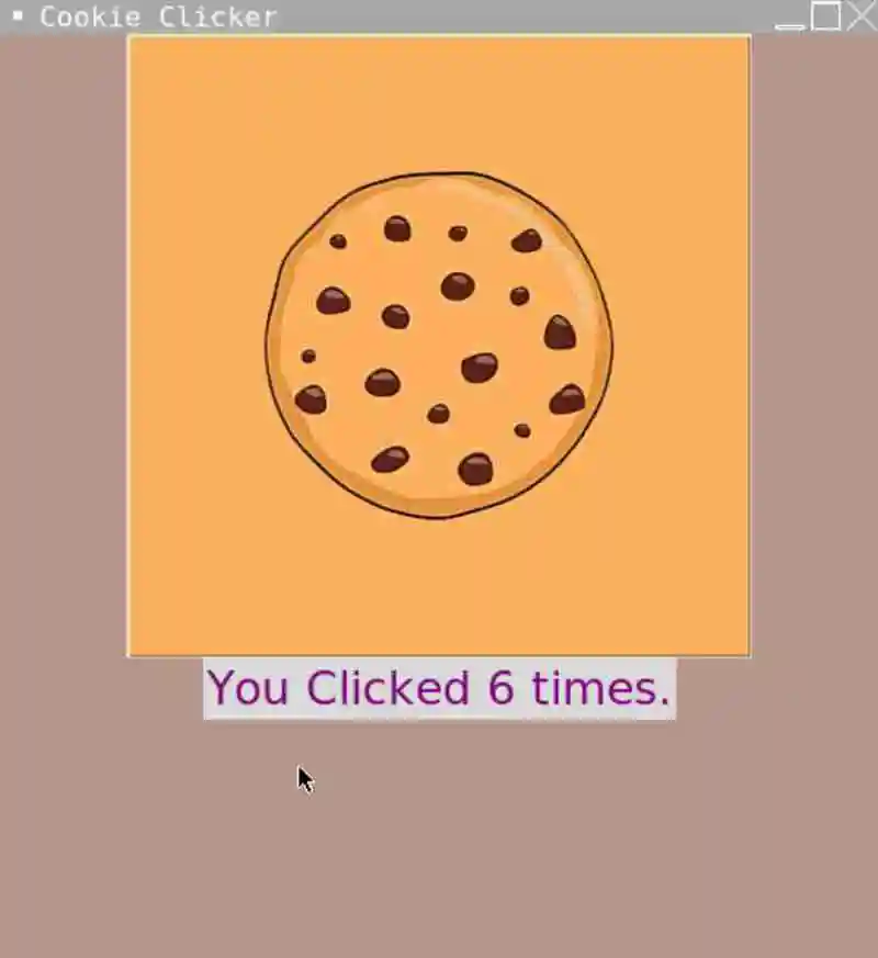 - 注意:确保 cookie.png 与代码文件位于同一目录中或提供完整路径。该图像最好是 png 以便与 photoimage 兼容。