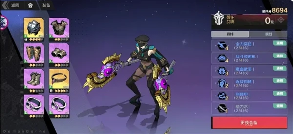 这个就给大伙理解一下,当然蓝紫金品质越高基础数值就越高,装备羁绊的栏位也就越多,右边就是羁绊栏,加成分别2、4、6三个档位