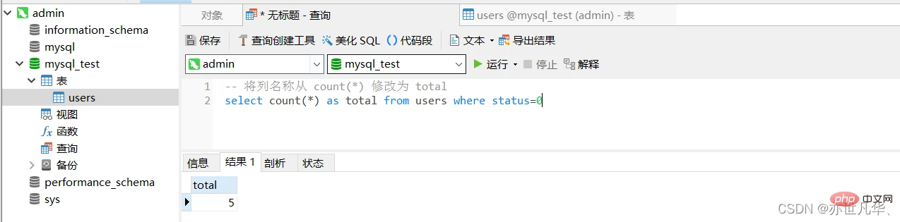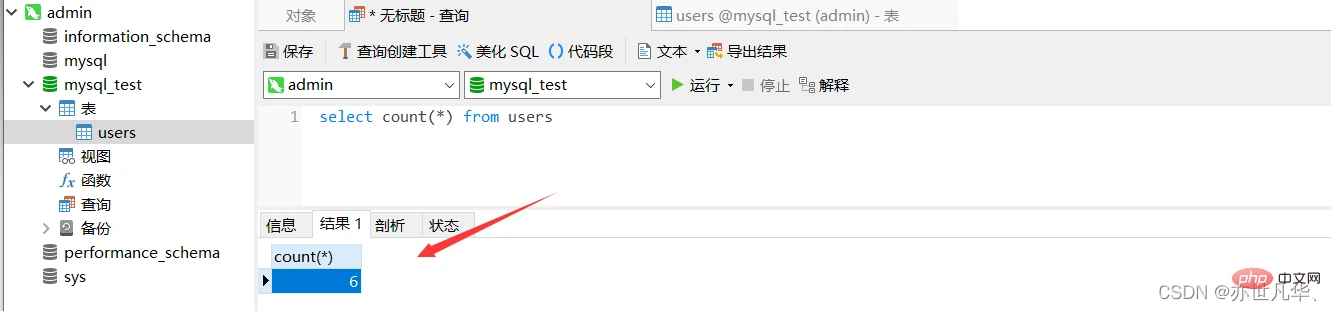 COUNT(*)函数用于返回查询结果的总数据条数,语法格式如下: