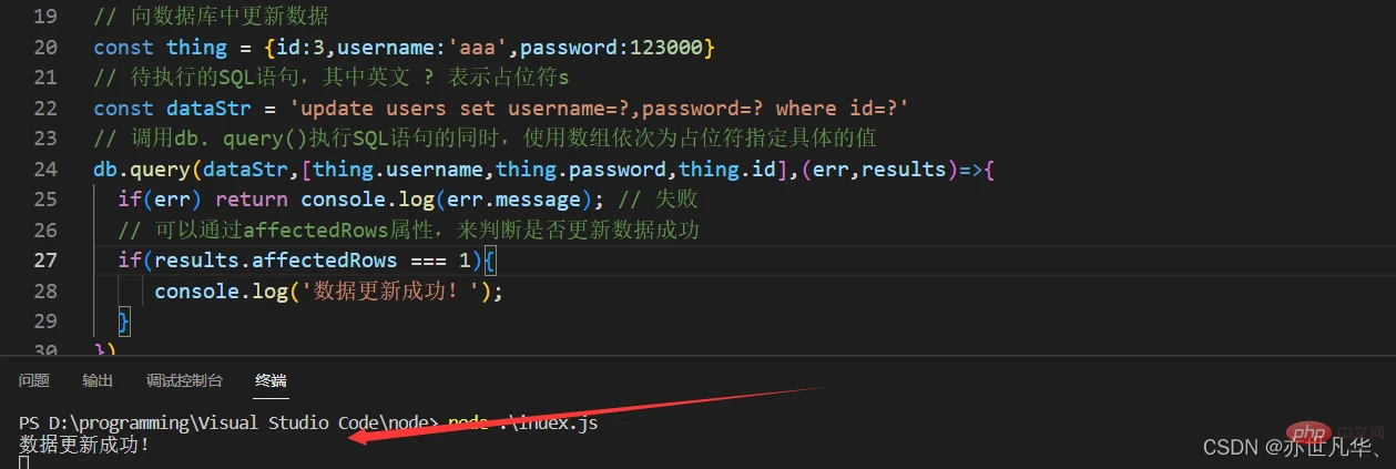 // 可以通过affectedRows属性,来判断是否更新数据成功