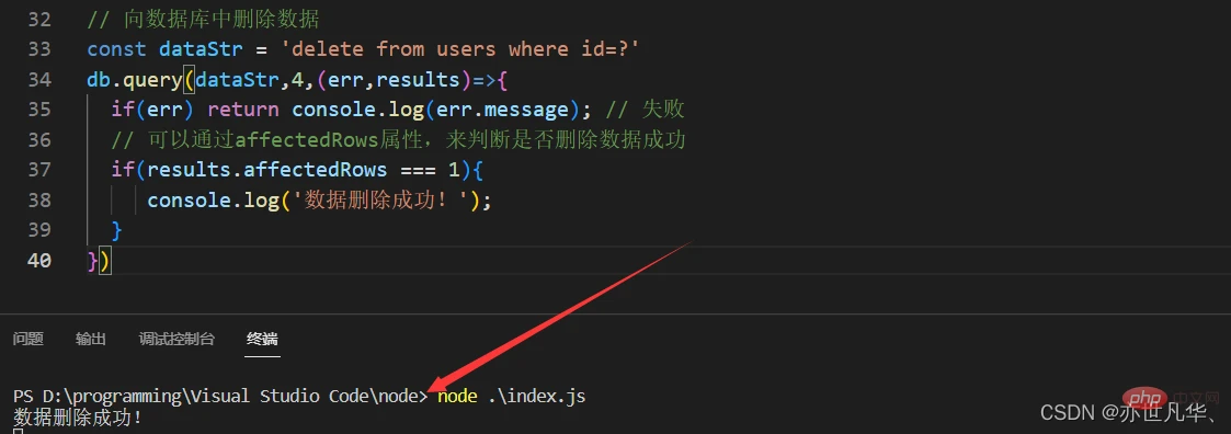 // 可以通过affectedRows属性,来判断是否删除数据成功