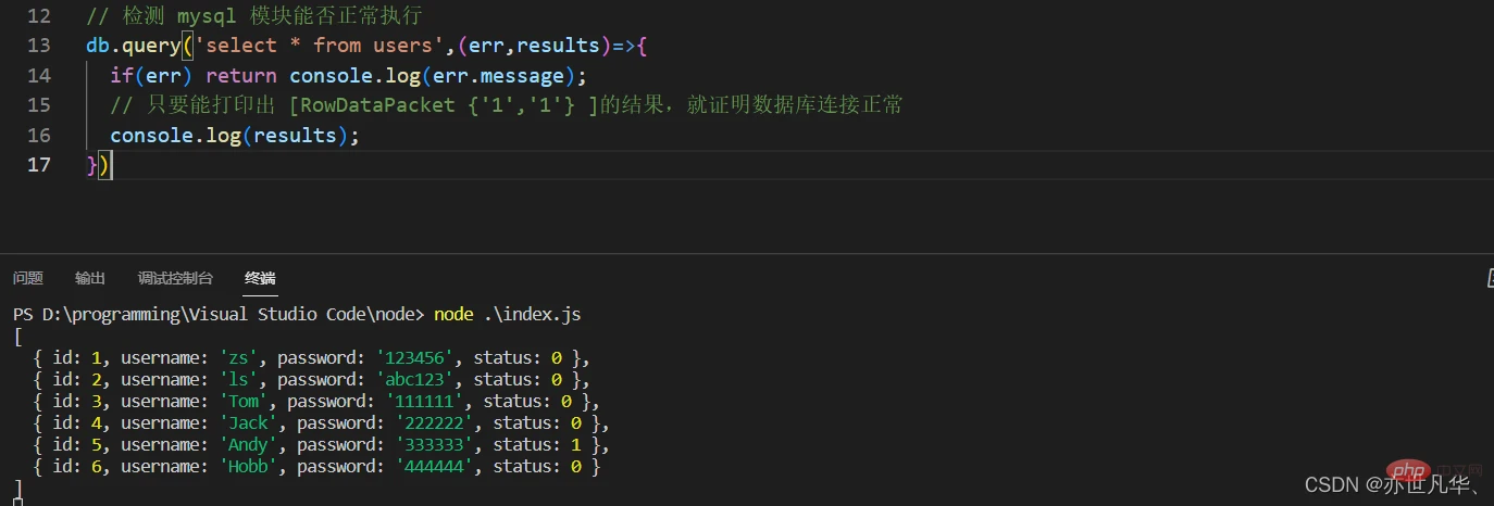 })通过mysql模块执行SQL语句: