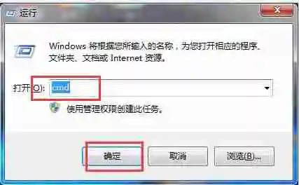 1、双击此电脑,查看插入的sd卡的盘符,快捷键"win+R"开启运行,输入"cmd",点击确定打开。