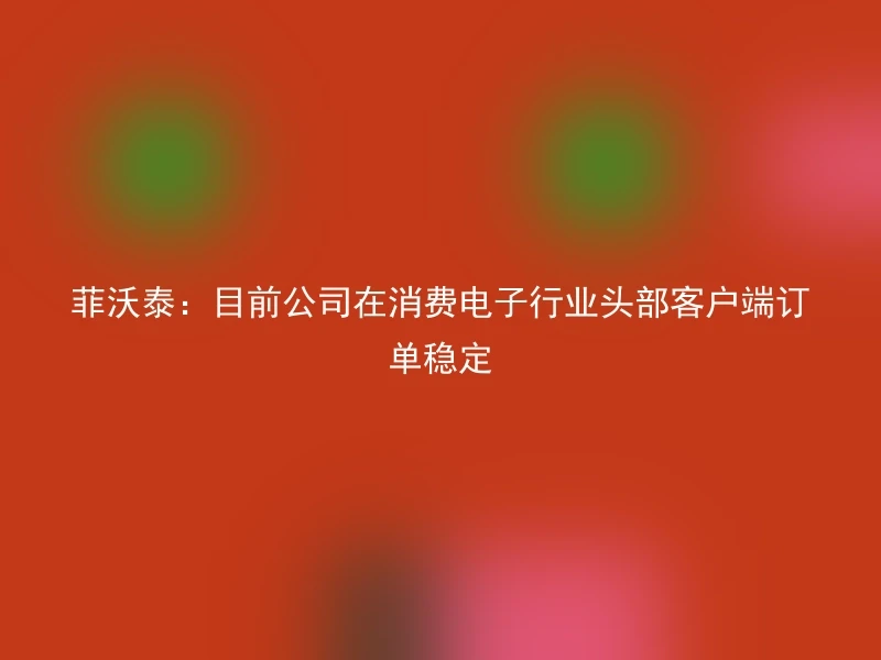 菲沃泰近期接受机构调研,对公司发展现状及未来规划进行了阐述。公司表示,消费电子行业通常下半年表现优于上半年,目前公司在头部客户订单稳定,并积极探索新的增长点。