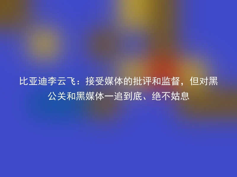 比亚迪集团品牌及公关处总经理李云飞近日发布视频声明,回应近期针对比亚迪的负面报道。他表示,比亚迪欢迎媒体的监督和批评,但对于恶意造谣、长期诋毁公司的“黑公关”和“黑媒体”,将坚决追究到底,绝不姑息。