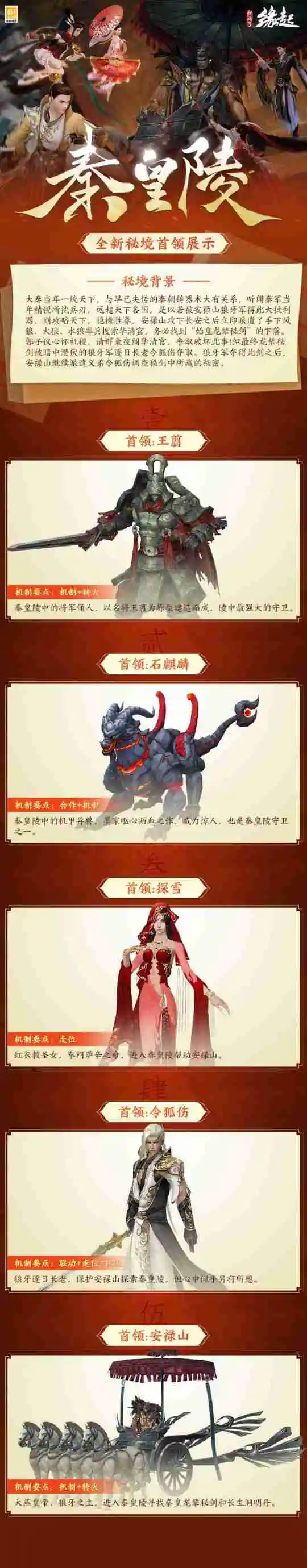 江湖风云再起,传说中的秦皇秘剑重现,引得群雄逐鹿。安禄山义弟令狐伤受命潜入千年帝陵,意图解开剑中隐秘。暗潮涌动之下,各路侠士亦闻风而动,组队踏入秘境,直面层层机关与强敌......秘境深处,诸多宝藏亟待侠士们前来开启!