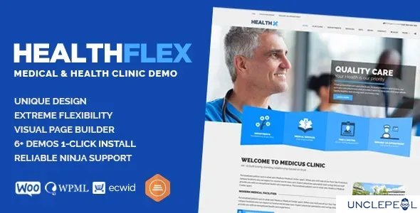 HEALTHFLEX DOCTOR Medical Clinic Hospital & Health Theme by Plethora Themes on Theme Forest. Healthflex Doctor features a unique design tailored to suit the medical health industry website. A versatile, multipurpose theme with seven unique multipage demos! It is suited for: Doctors, Medical Clinic, Health Coach, Healthcare Professionals, Physicians, Dentist, Dental Clinics, Medical Conferences, Veterinarians, Hospitals, Health Clinics, Pediatricians, Gynecologists, Diet & Beauty Specialists, Nutritionists, Dietitians, Personal Trainers, Fitness Coaches, Health Bloggers and Yoga Professionals. It is so flexible that can serve any Health Care Business Site Project as well!
