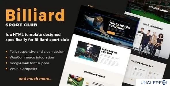 In addition to the theme options control panel,Billiard Sport Club also includes WPBakery drag-and-drop page builder tool, a perfectly intuitive way to create and customize great looking pages.WooCommerce integration